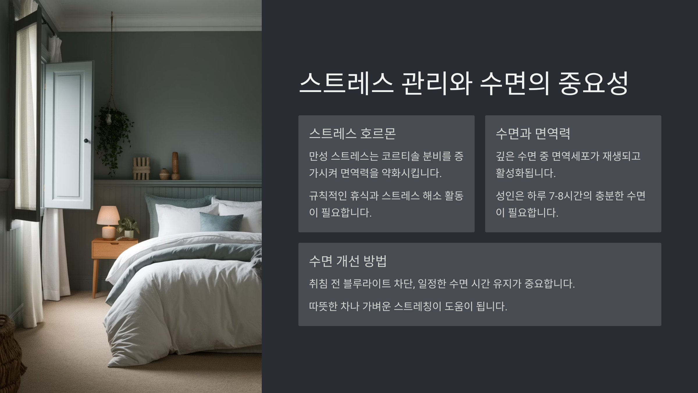 - 스트레스 관리와 수면의 중요성